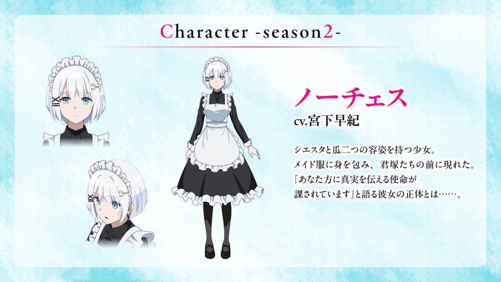 Dalam rangka ulang tahun dari Siesta serial anime The Detective is Already Dead mengumumkan visual dan PV Terbarunya, selain itu juga lagu tema untuk season 2 diumumkan dimana Saki Miyashita yang memerankan Siesta akan membawakan lagu opening dengan judul “koko de iki teru’ shiesuta” sedangkan Ayana Taketatsu yang memerangkan Natsunagi Nagisa akan membawakan lagu endingnya dengan judul dengan judul “Kodo”.